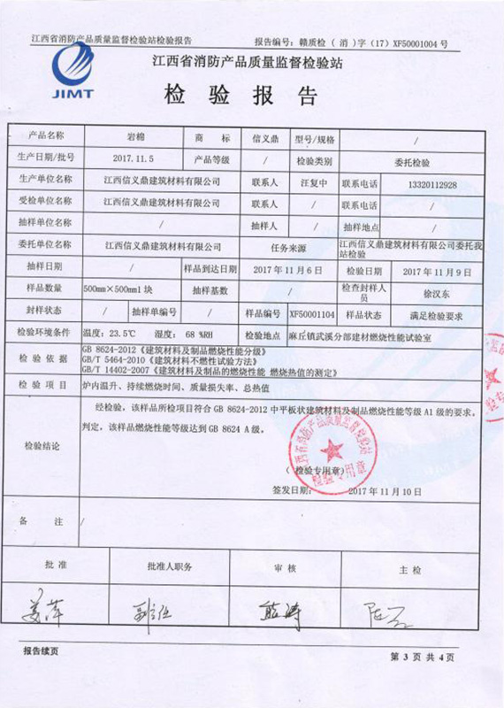 2021年最新巖棉板檢驗報告